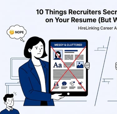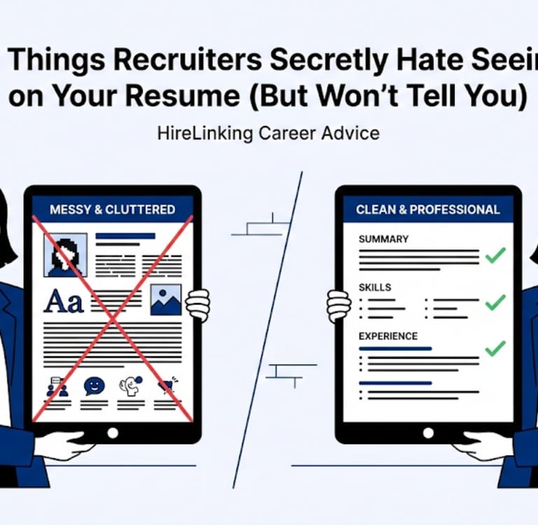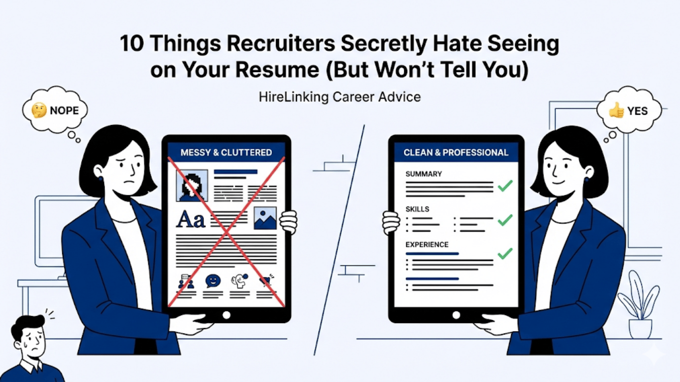 Here are 10 things recruiters secretly hate seeing on your resume—and what to do instead. Use this as a checklist while building or updating your resume (especially if you’re using a template from HireLinking).